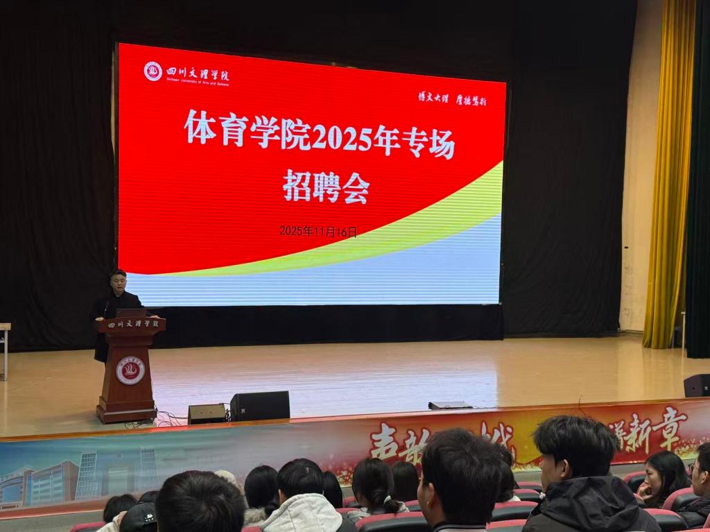 2025 11 16 日上午9:00,体育学院在莲湖校区多功能厅组织召开2026届毕业生专场招聘会。本次活动邀请成都魔方运动网络科技有限公司、成都蜻蜓少儿篮球连锁运动馆、达州德瑞克体育文化发展有限公司三家体育类企业到校,为毕业生搭建精准对接的求职平台,切实打通就业服务的最后一公里”。 学院党政领导、学工办主任、毕业班辅导员及2026届毕业生参会。